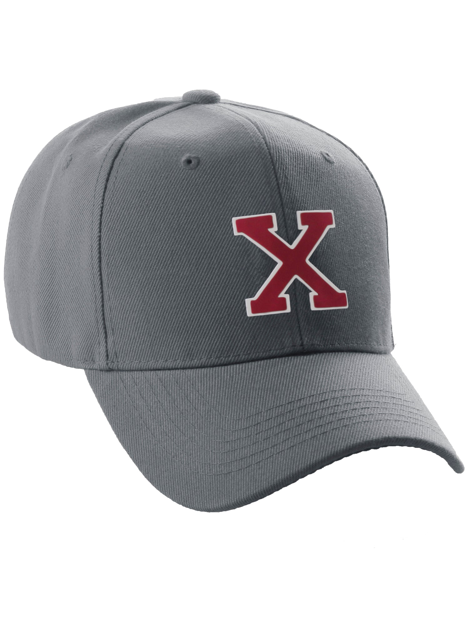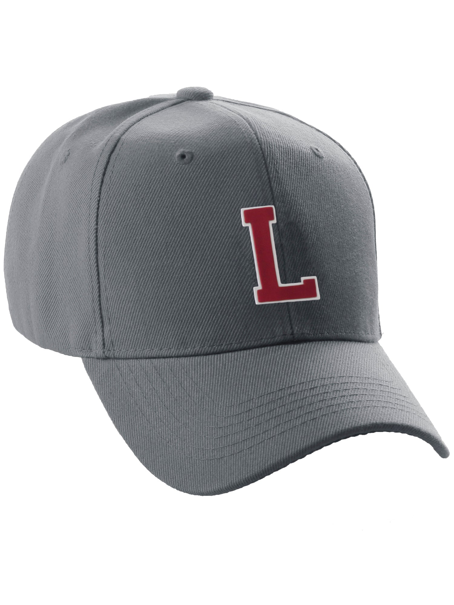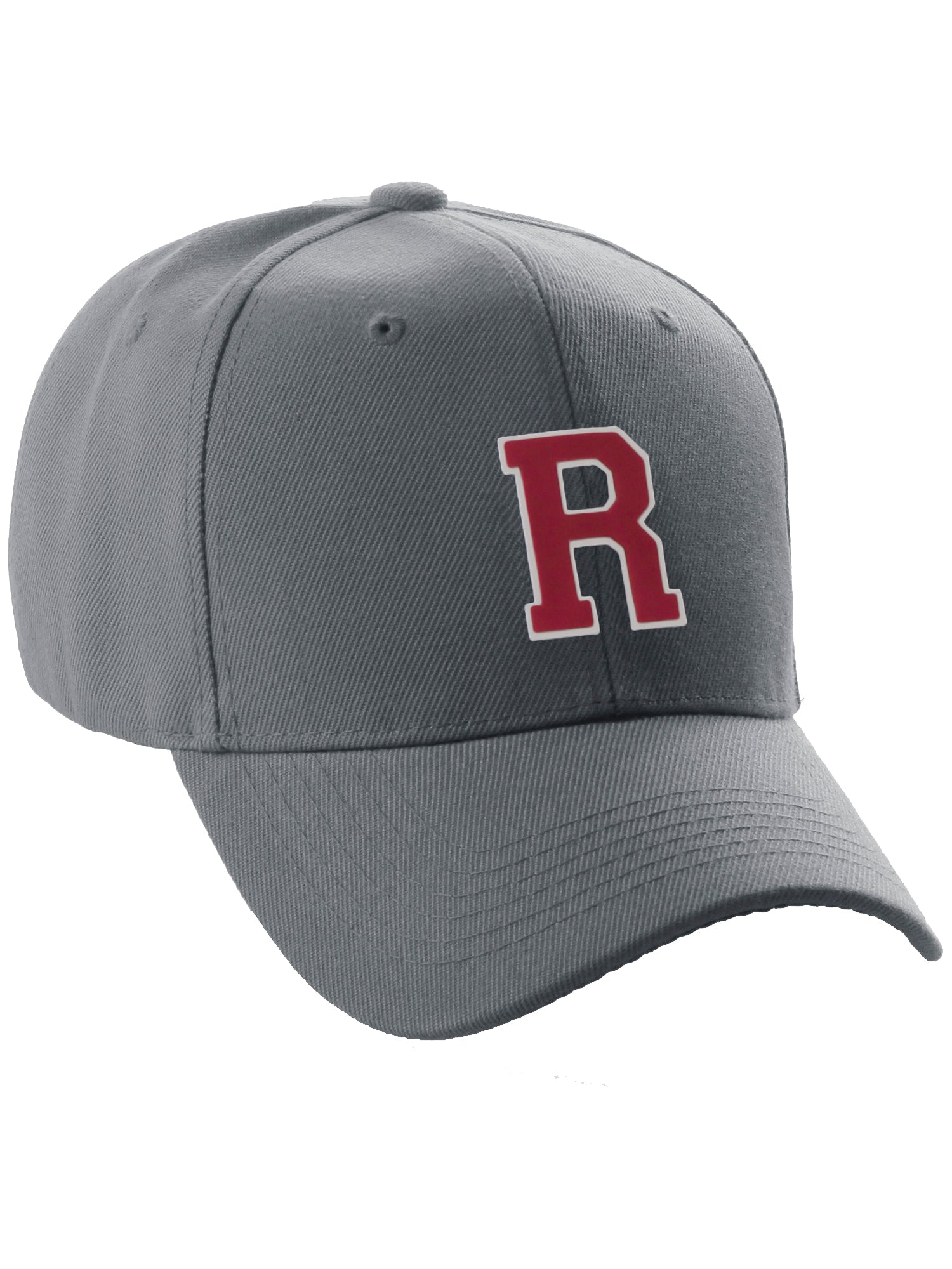 Classic Baseball Hat Custom A to Z Initial Team Letter, Charcoal Cap White Red